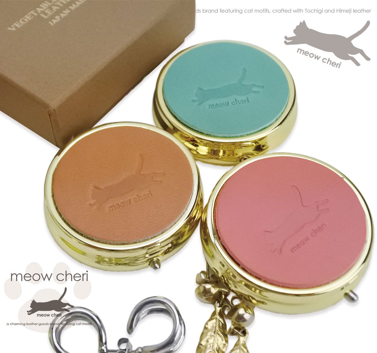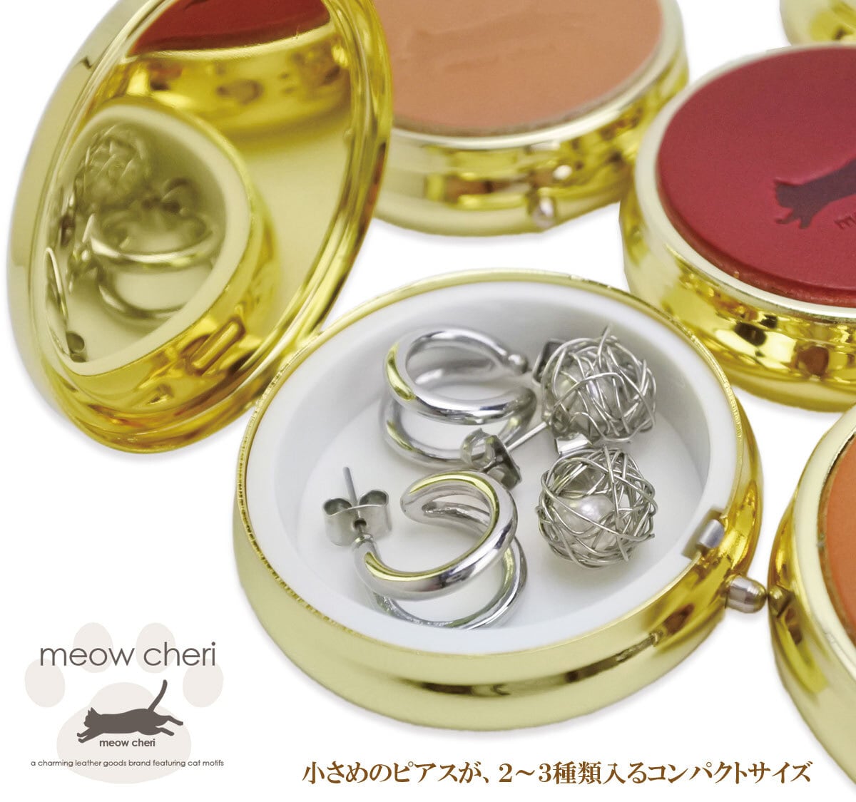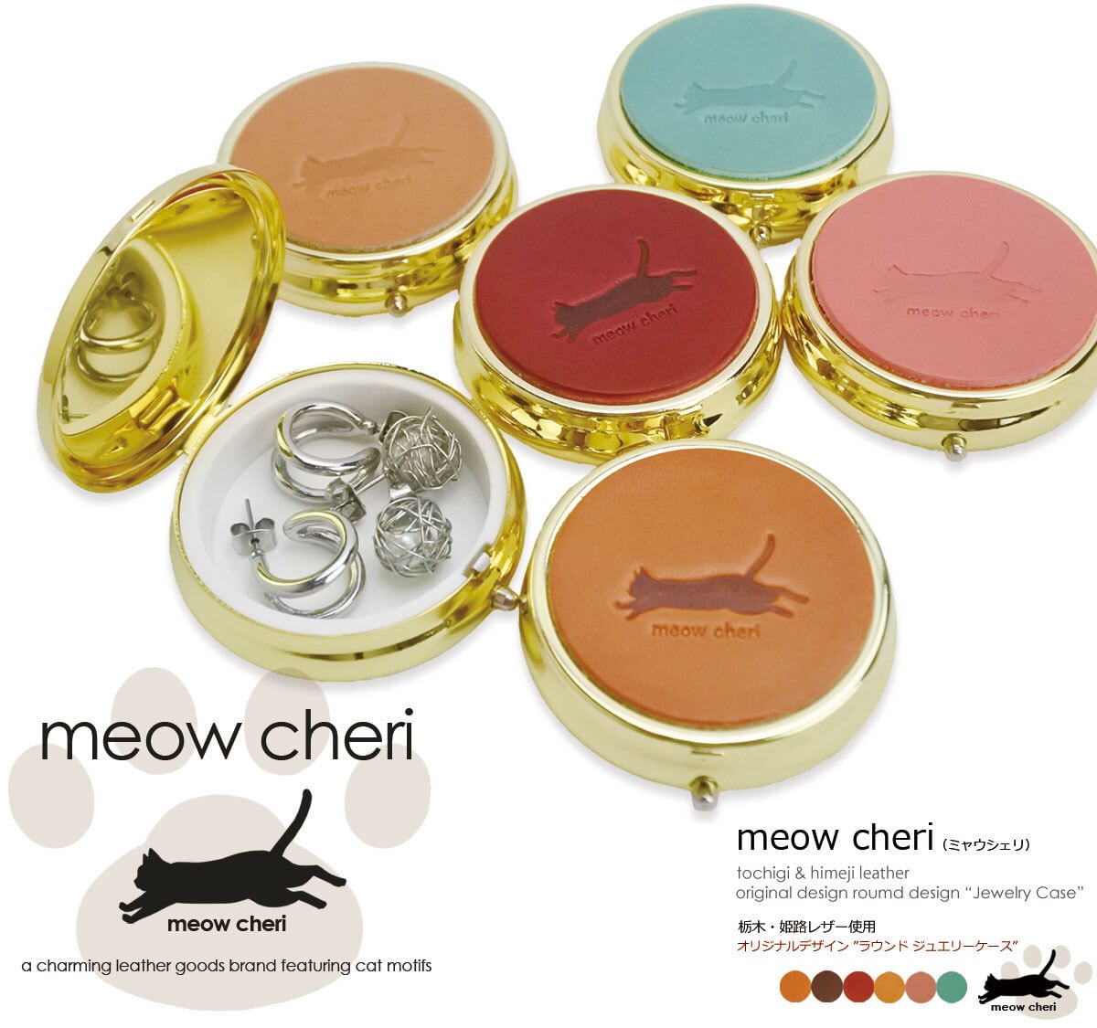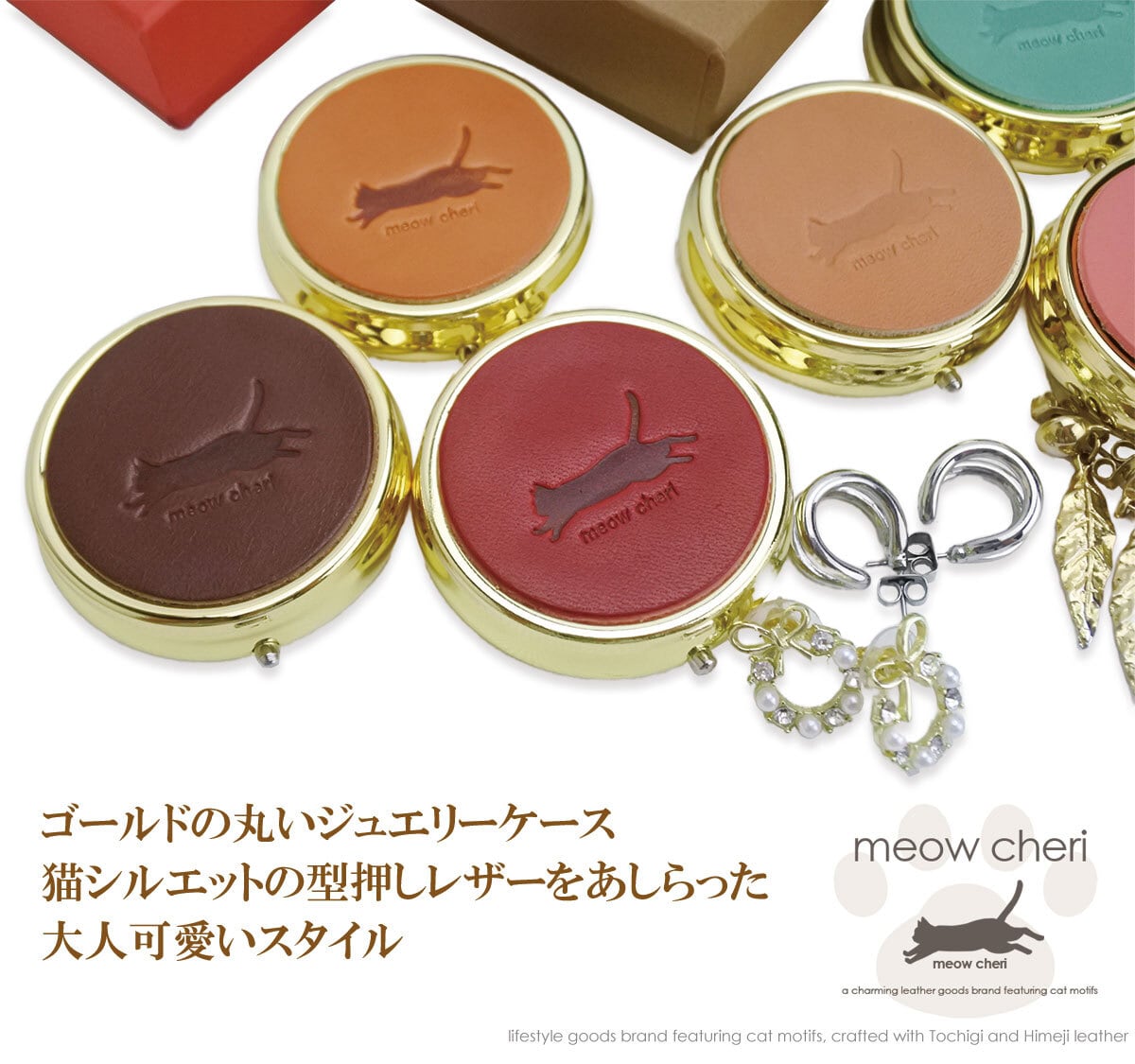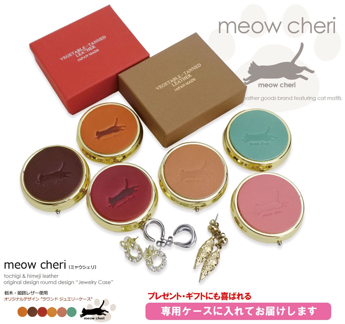 meow cheri ジュエリーケース 猫 本革 猫型押し かわいい 携帯用 栃木レザー 姫路レザー 日本製 ギフト プレゼント 誕生日