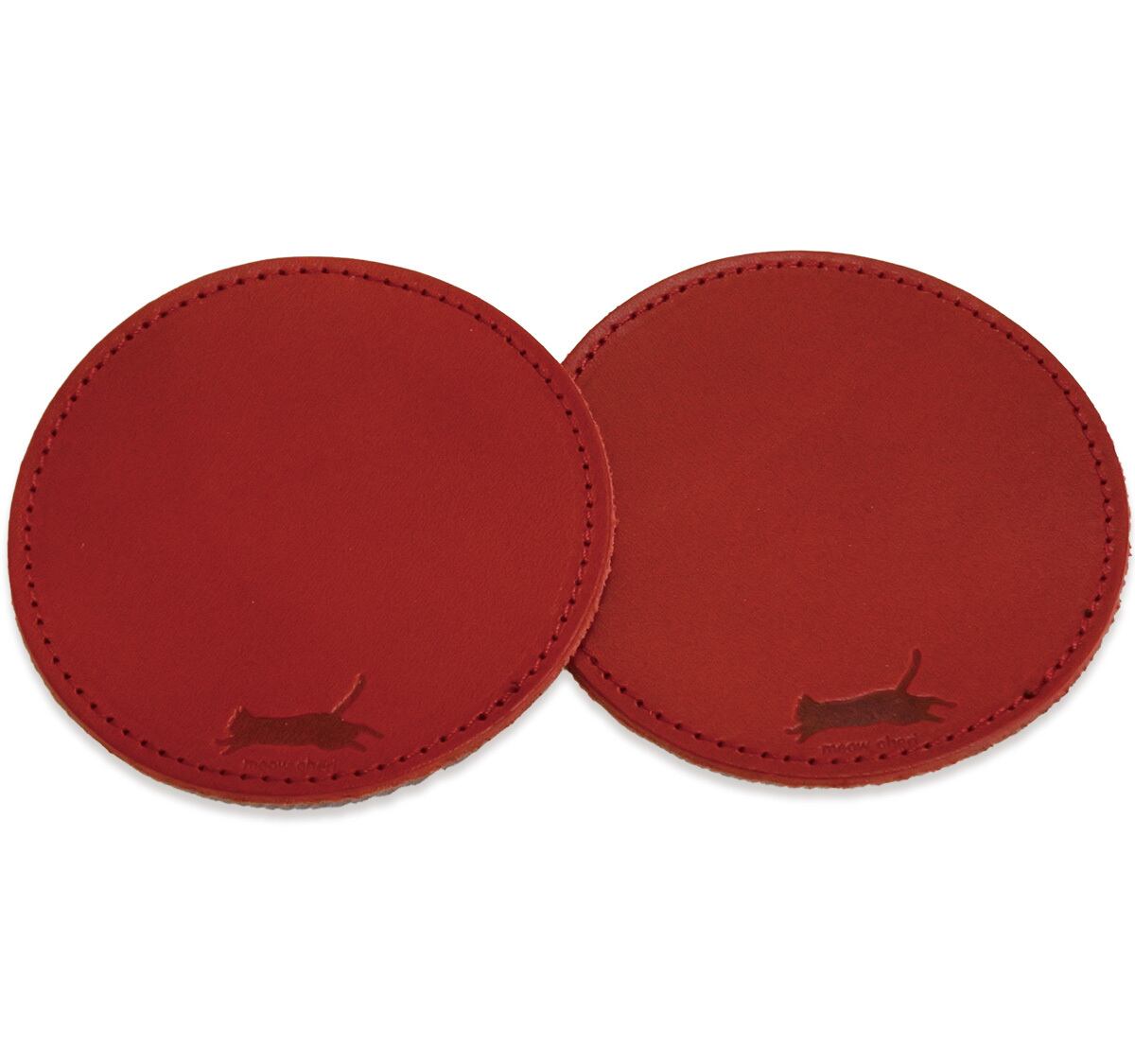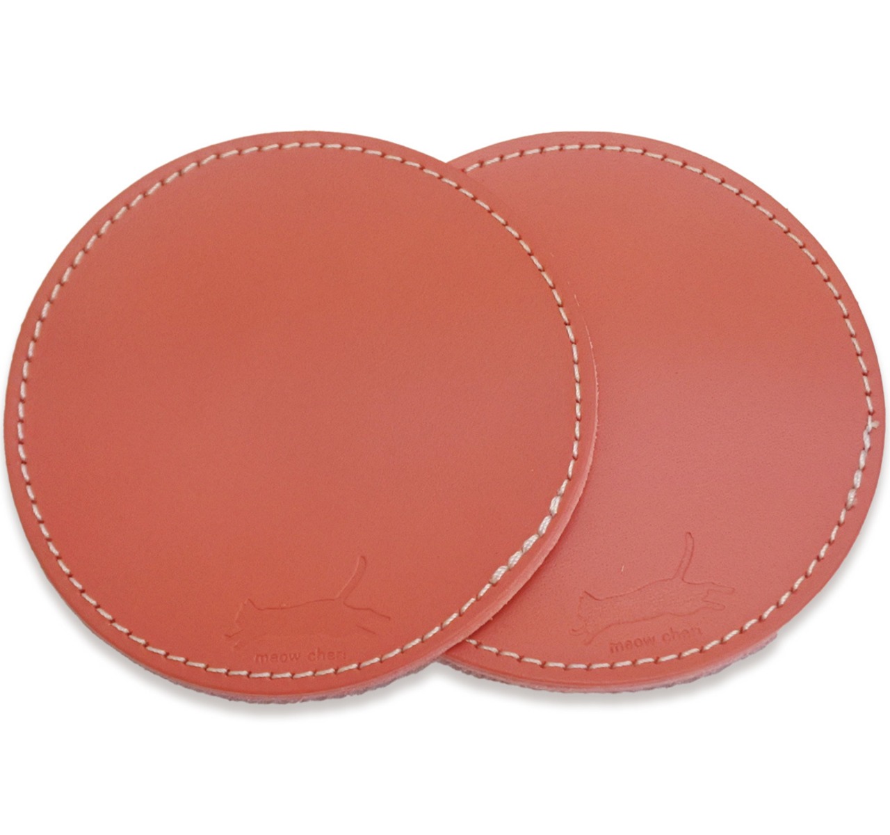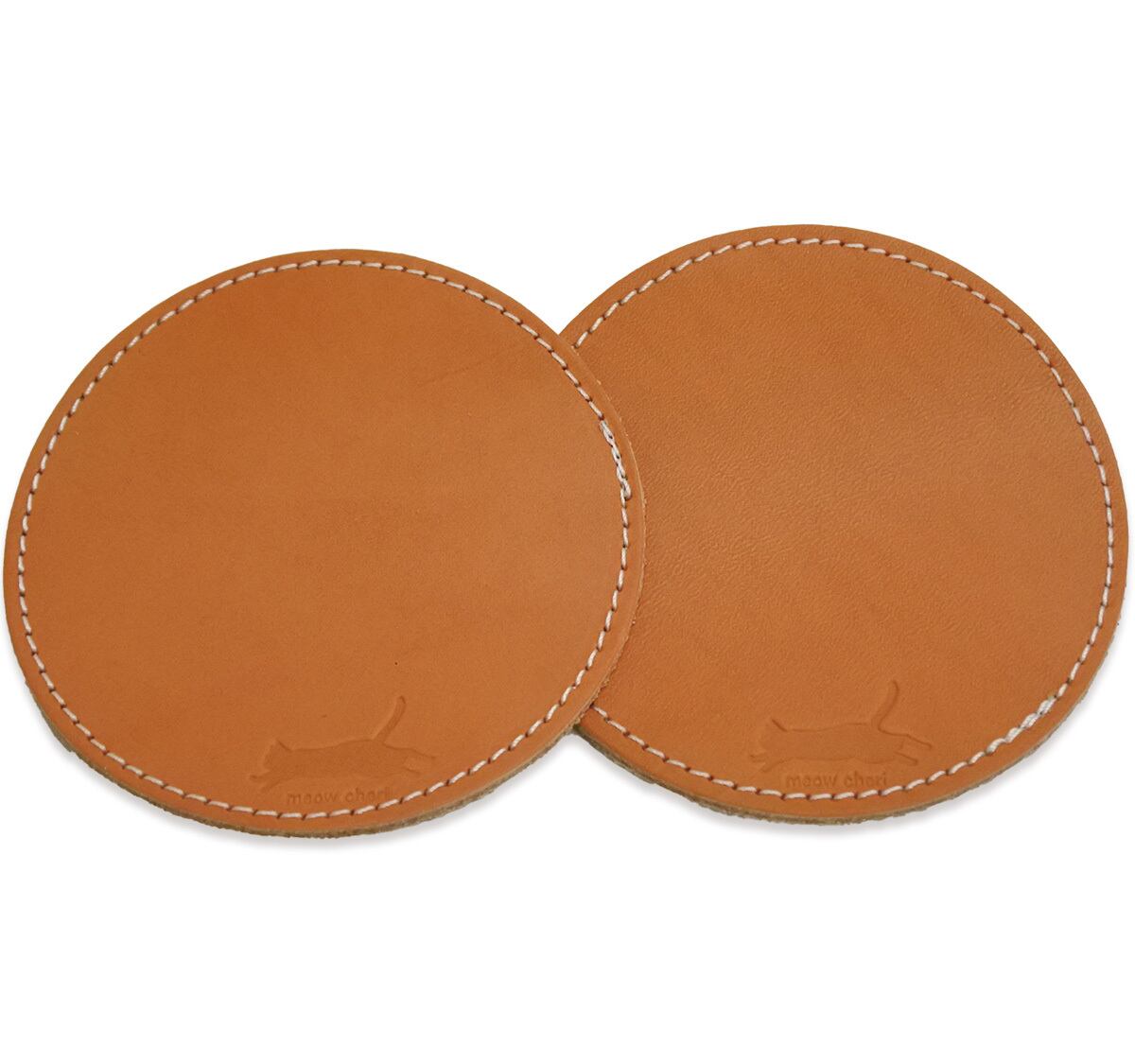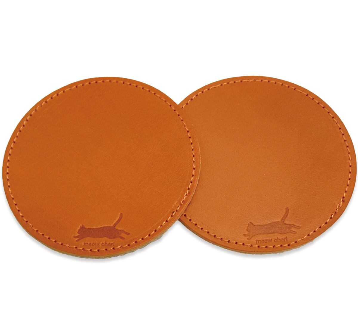 シンプルながらも上質な存在感で、テーブルまわりをぐっと洗練された印象にしてくれる「meow cheri」 のレザーコースター。安定感がありながら、グラスやカップを置いたときの音をやわらげるため、落ち着いた雰囲気を演出。革ならではのやさしい手触りと、使い込むほどに深まる味わいも魅力のひとつです。さらに、割れたり欠けたりする心配がないので、長く愛用できる実用性にも優れています。ワンポイントには、さりげなく猫ちゃんの型押しを施しており、可愛らしさと遊び心をプラス。猫好きな方へのプレゼントにもぴったりなコースターです。