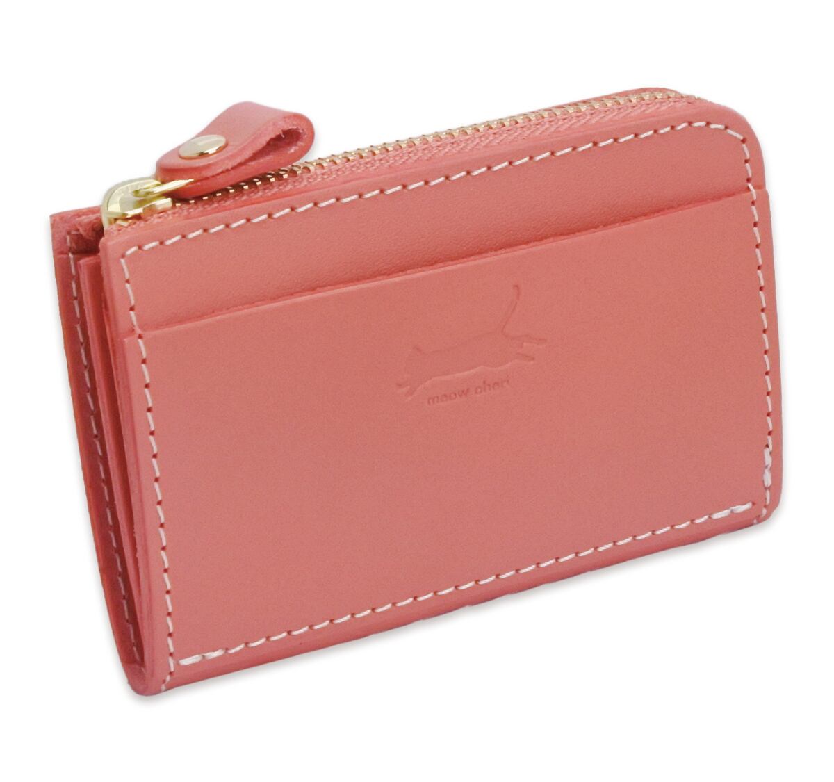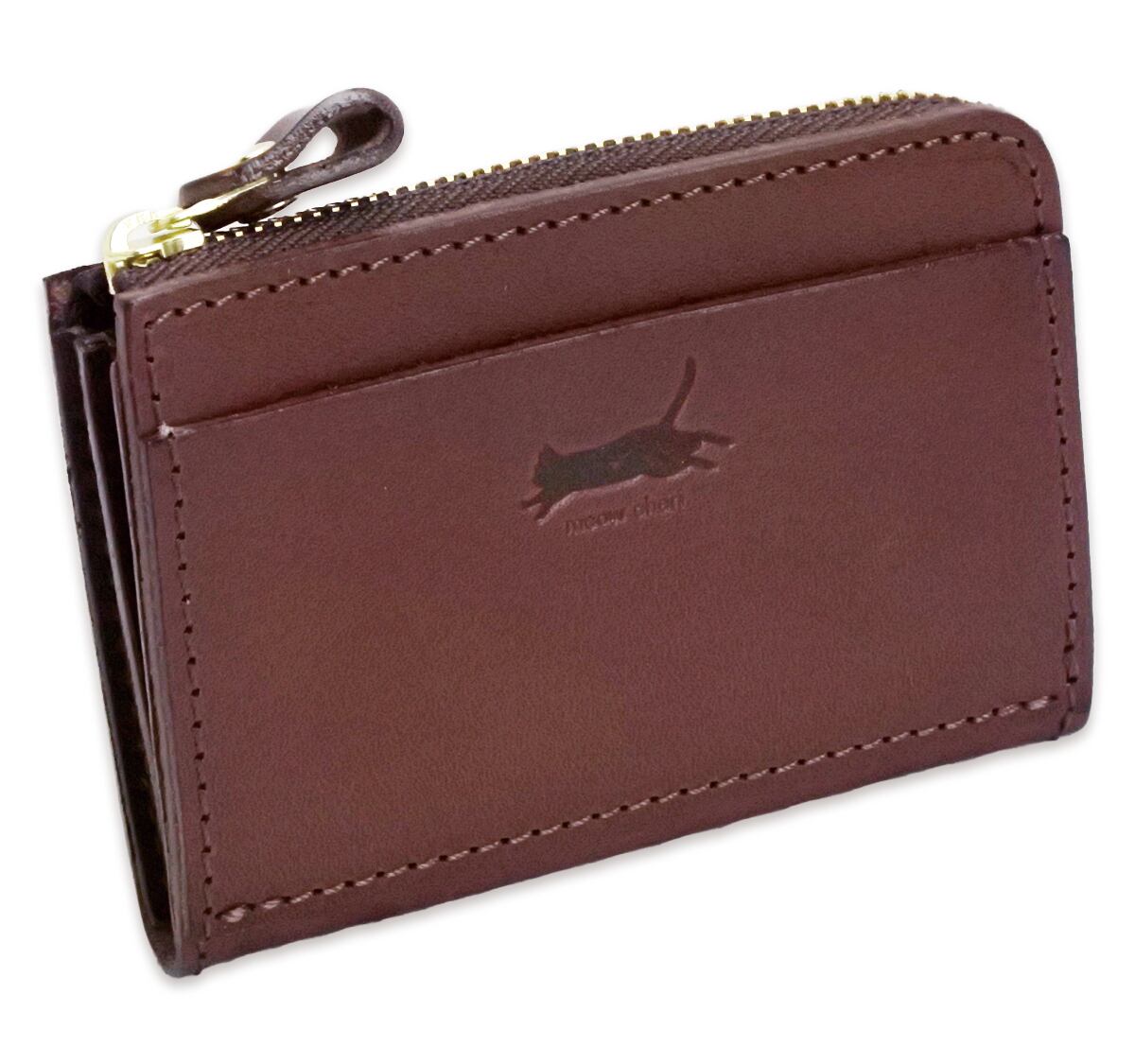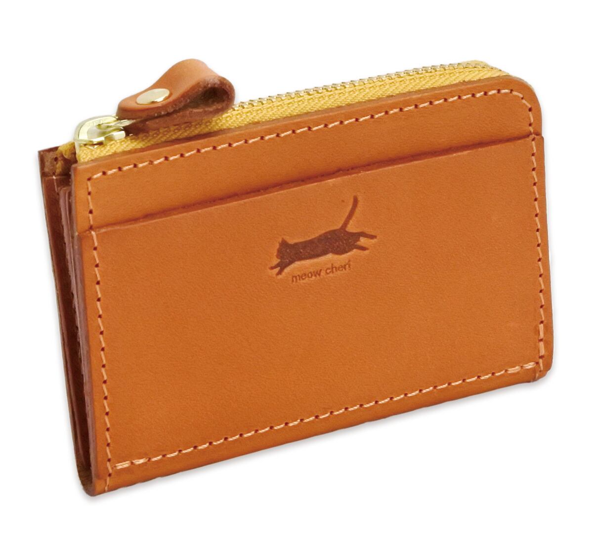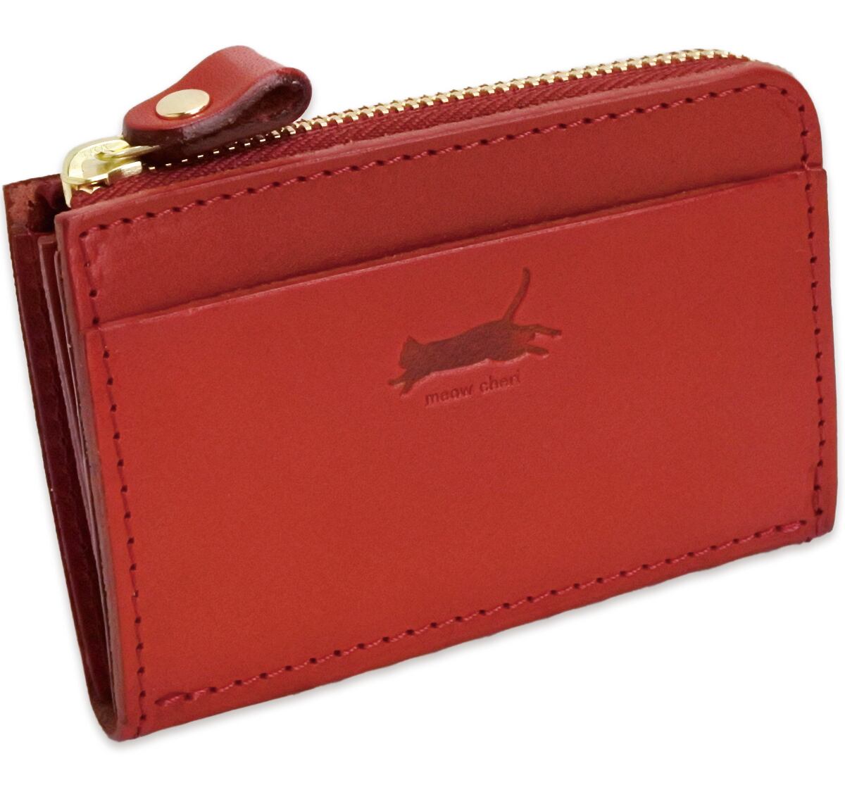 meow cheri 小銭入れ コインケース カードケース 猫 ネコ ねこ レディース 本革 日本製 L字ファスナー 栃木レザー 姫路レザー コンパクト 薄型 おしゃれ かわいい プレゼント