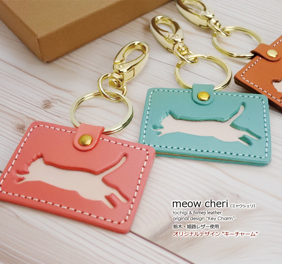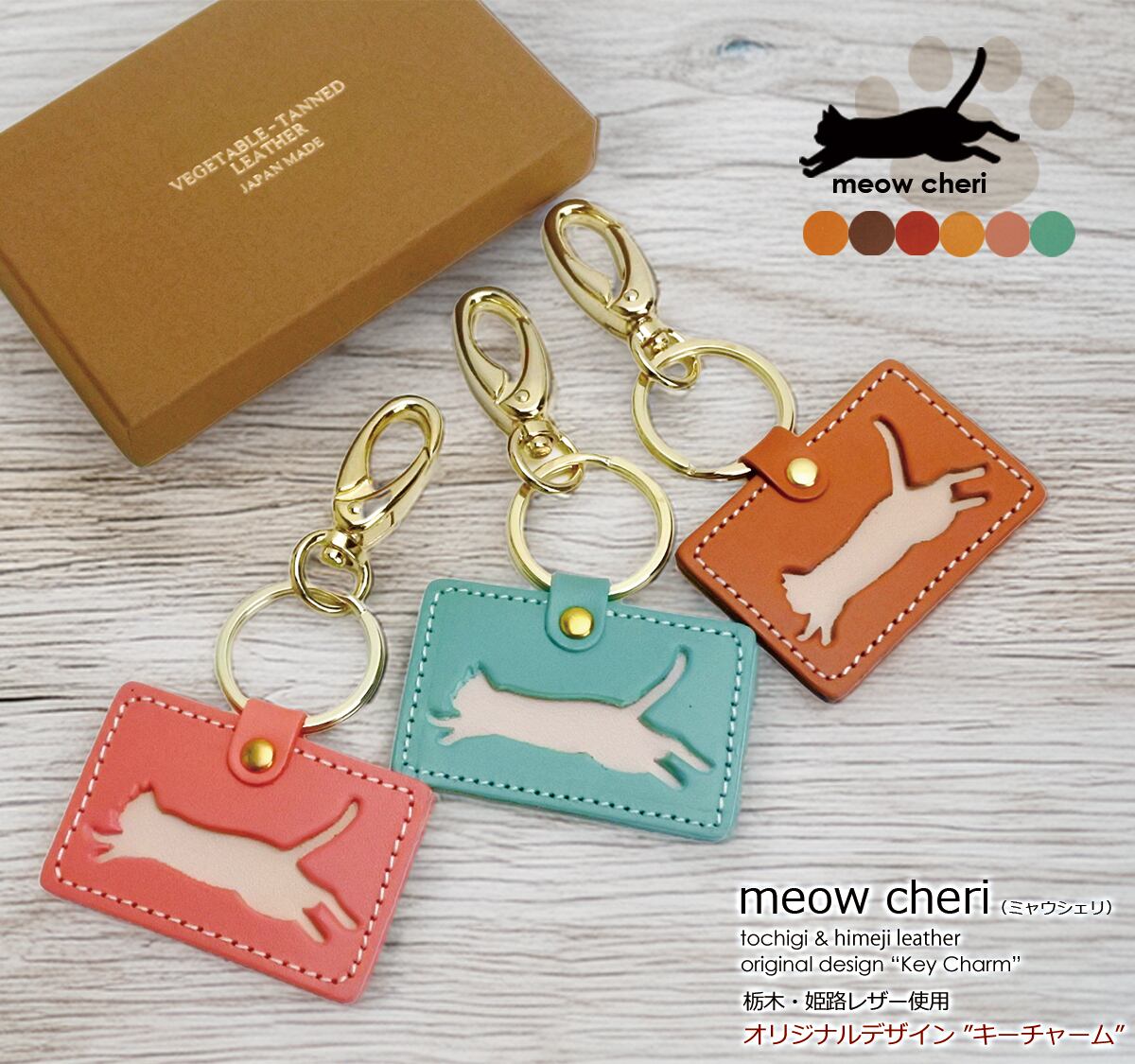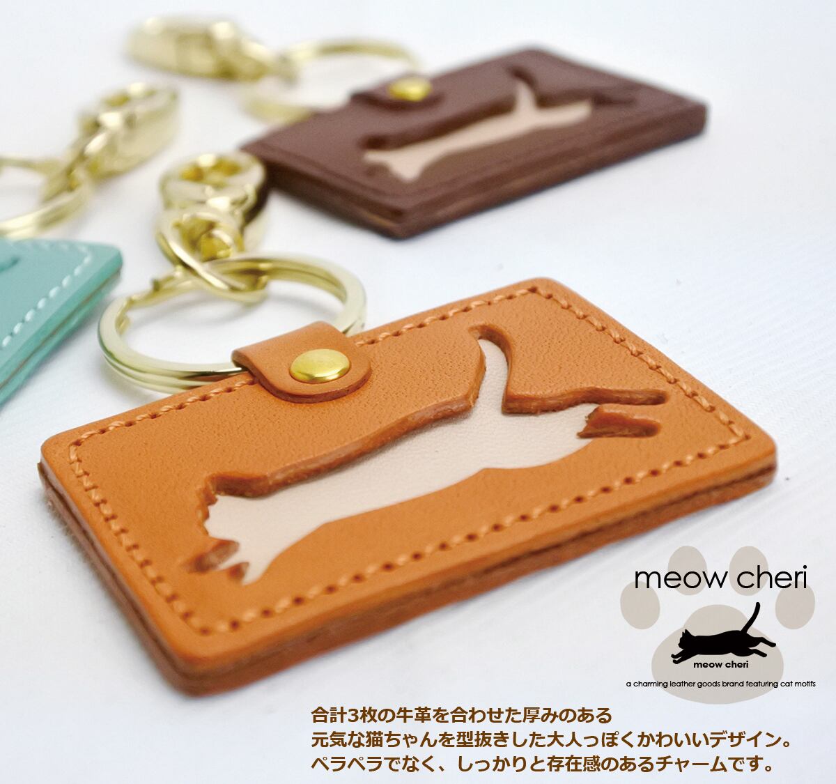 meow cheri キーホルダー キーチャーム バッグチャーム 猫 革 かわいい おしゃれ ねこ レディース 動物 レザー 栃木レザー 姫路レザー ブランド プレゼント