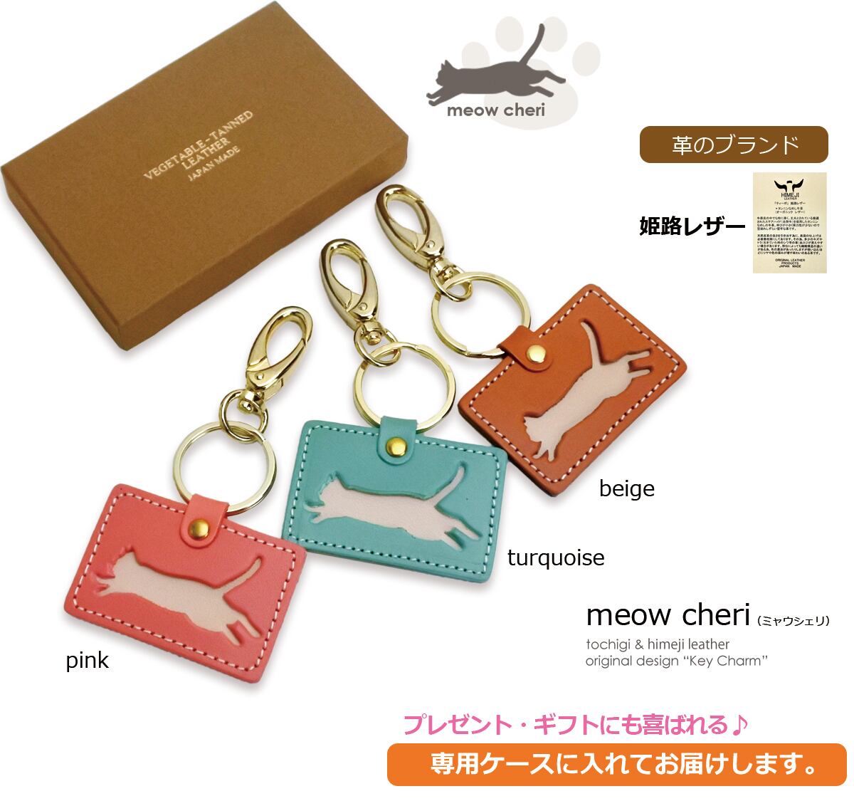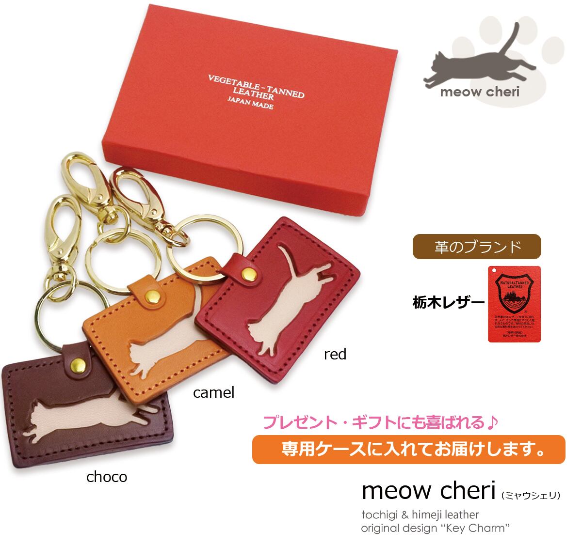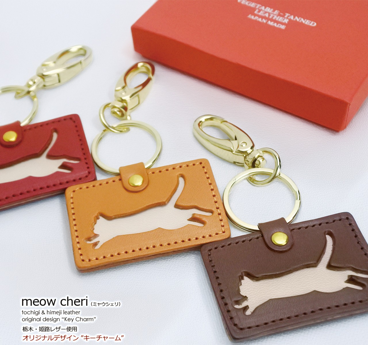 meow cheri キーホルダー キーチャーム バッグチャーム 猫 革 かわいい おしゃれ ねこ レディース 動物 レザー 栃木レザー 姫路レザー ブランド プレゼント