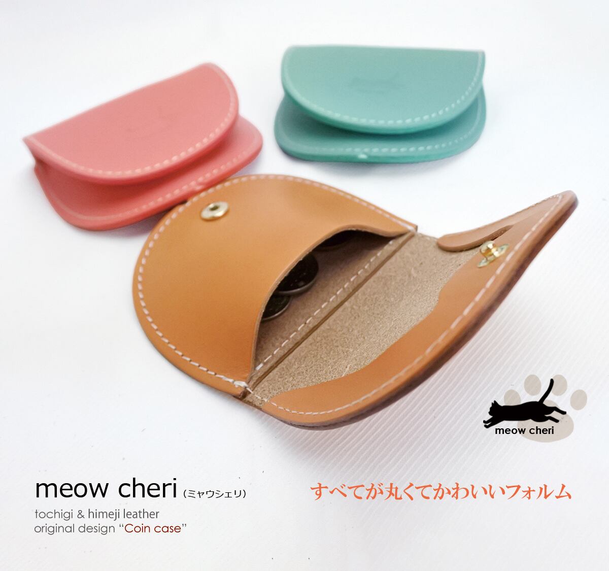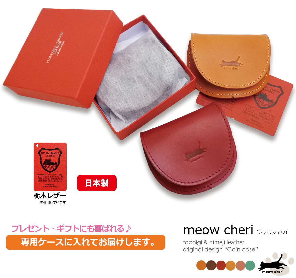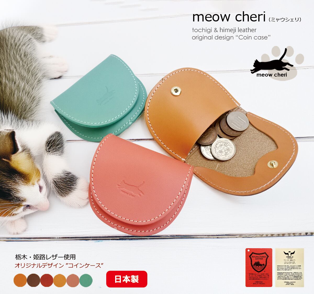 meow cheri コインケース 小銭入れ レディース かわいい 猫 革 本革 栃木レザー 姫路レザー おしゃれ 日本製 プレゼント
