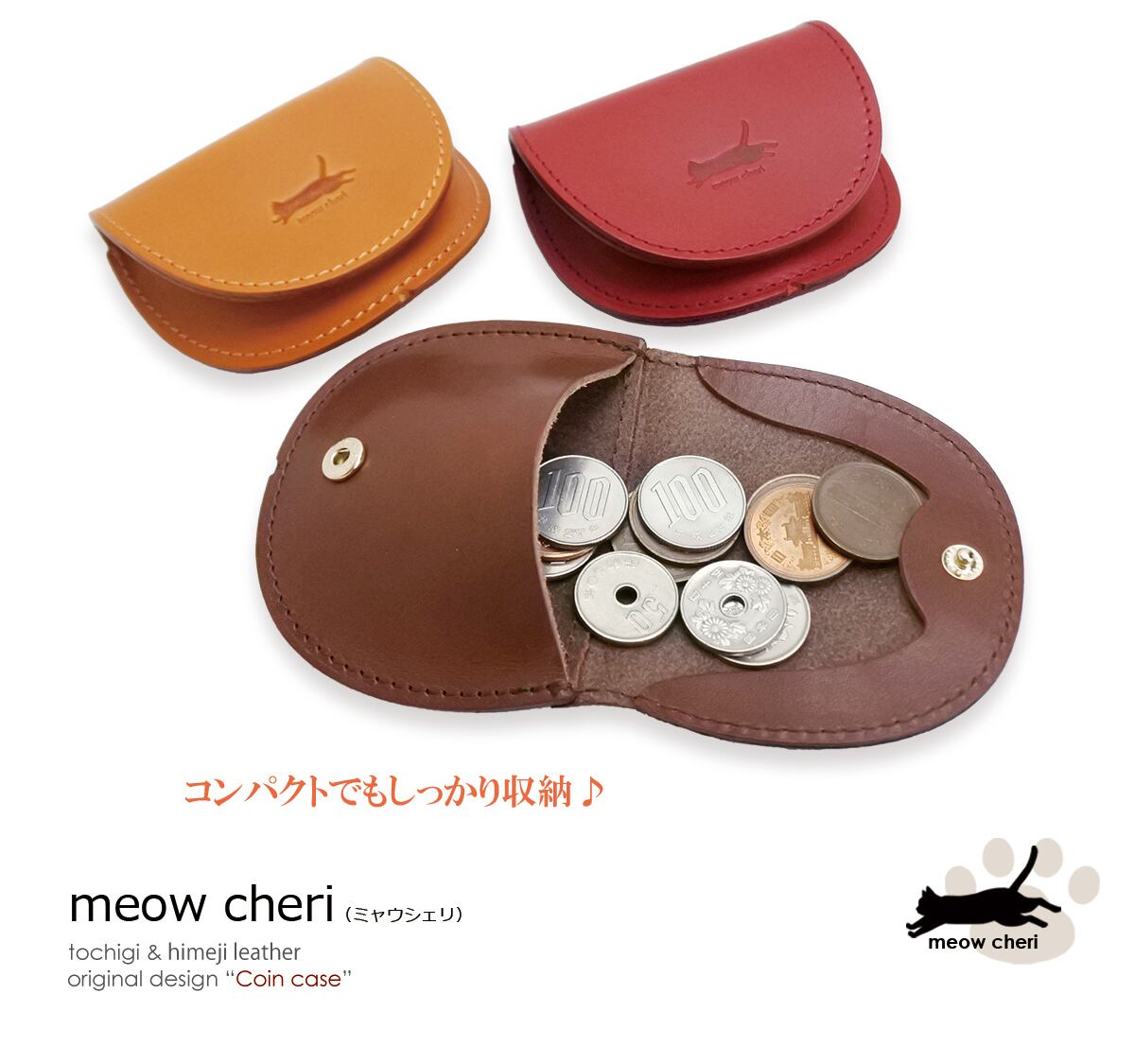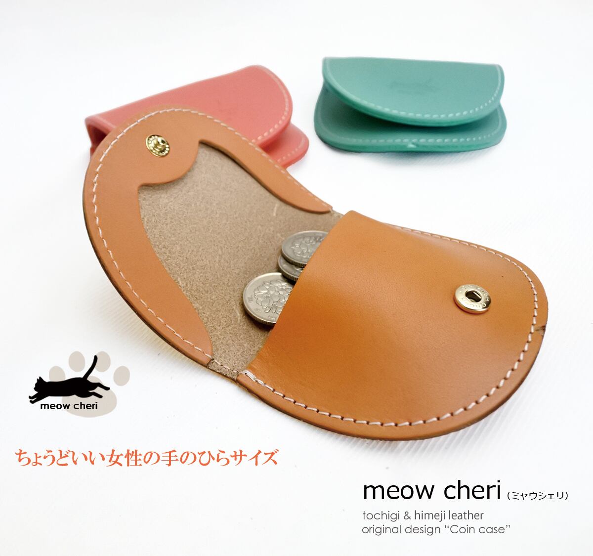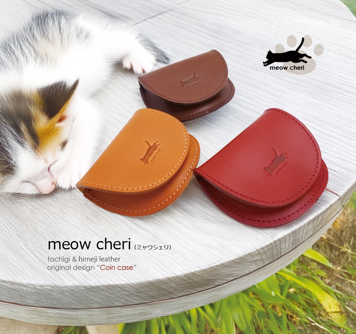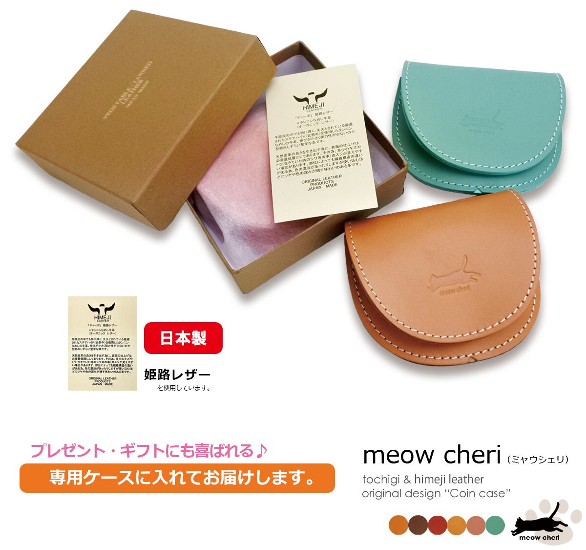 meow cheri コインケース 小銭入れ レディース かわいい 猫 革 本革 栃木レザー 姫路レザー おしゃれ 日本製 プレゼント