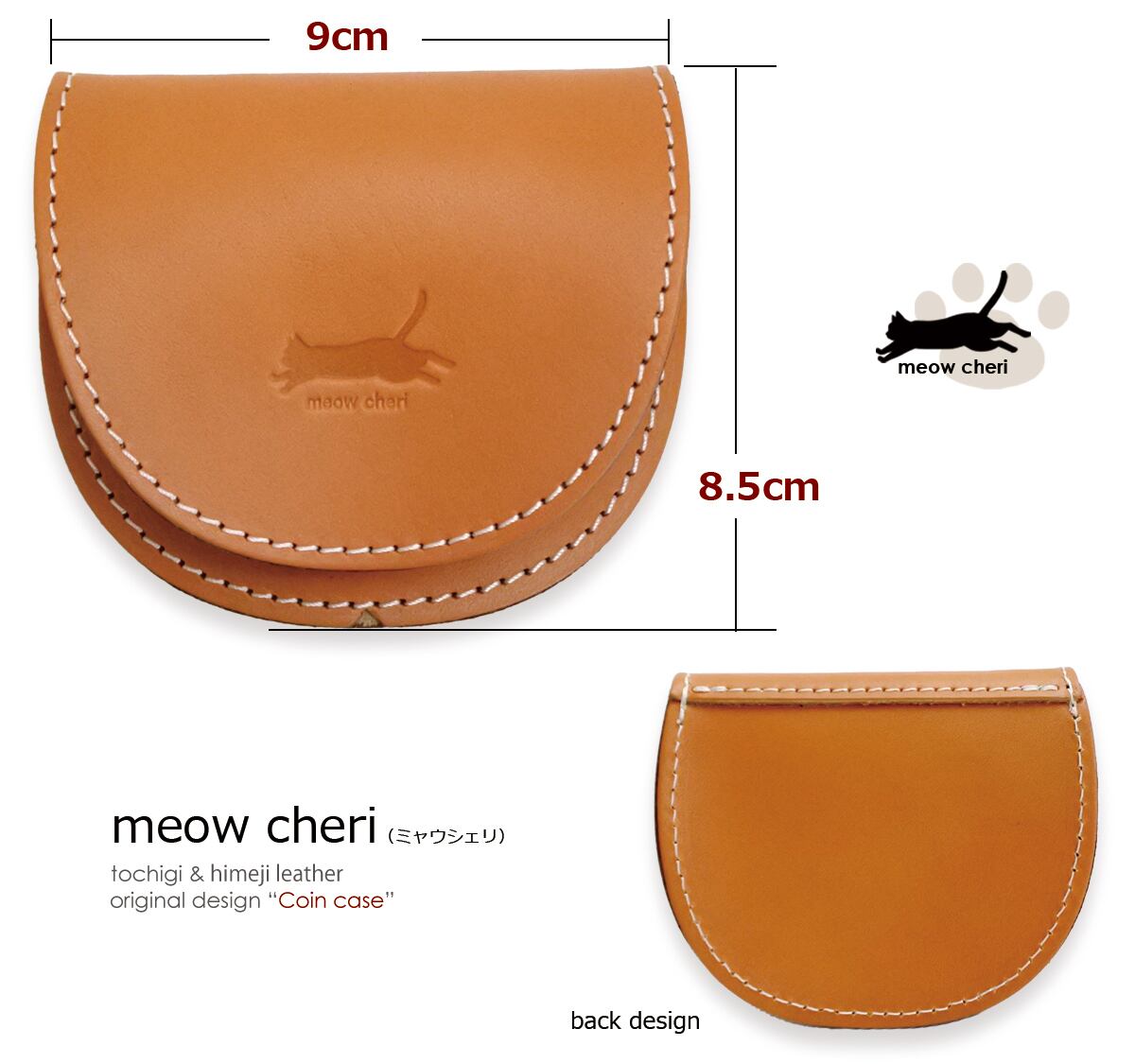「meow cheri(ミャウシェリ)」から、猫好きさんのためのとっておきコインケースが登場!手のひらサイズのコロンとしたフォルムに、元気に走る猫のシルエットがポイント。コンパクトなのに、小銭がしっかり収納できて使いやすさも抜群です。素材には、日本を代表する最高級の天然皮革「栃木レザー」と、しなやかで上品な光沢が魅力の「姫路レザー」を使用しています。日本の職人が一つ一つ丁寧に仕上げた温かみのある逸品です。専用ケースに入れてお届けするので、猫好きな方へのプレゼントやギフトにも喜ばれること間違いなし!